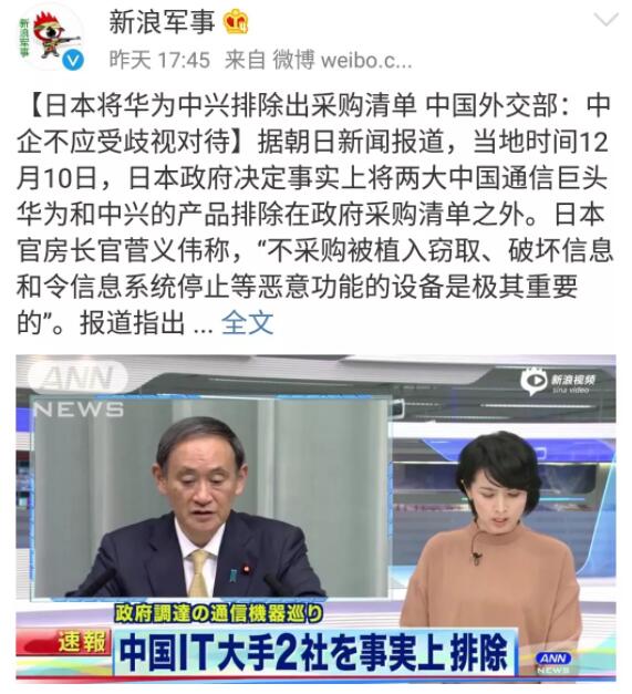 事實上將華為和中興產品,排除在政府採購清單之外。