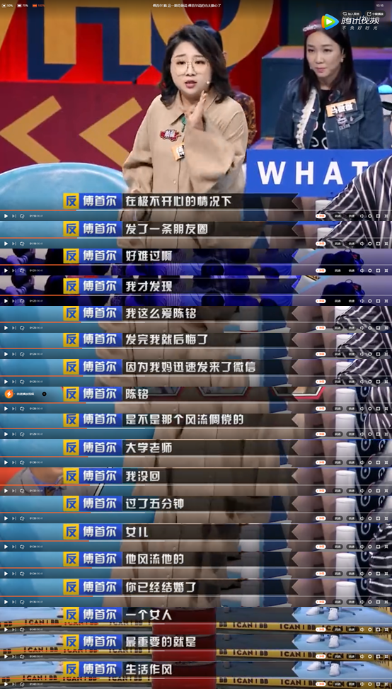 大概就是説他們隊的隊員陳銘被別的隊搶走之後,傅首爾發了條朋友圈説“好難過啊,我才發現我這麼愛陳銘”,她媽媽迅速發來消息:“陳銘?是不是那個風流倜儻的大學老師?他風流他的,你已經結婚了!”並且還語重心長地教育她:“一個女人,最重要的就是生活作風!”