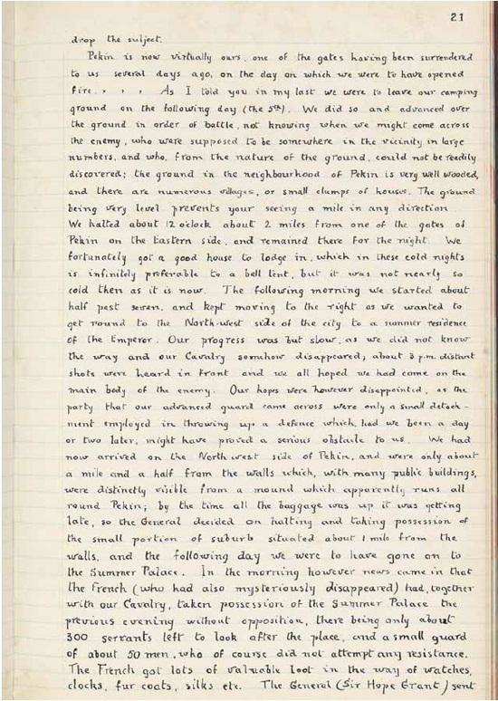 私信中詳細記載了火燒圓明園和佔領頤和園的過程