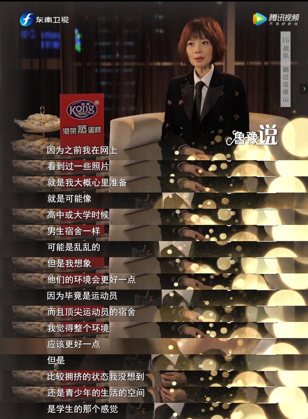 在參觀iG英雄聯盟戰隊的基地時,魯豫説雖然自己提前從互聯網上搜索了相關資料,但實際情況還是跟自己想象中的很不一樣。他説本以為他們的宿舍可能想高中或大學的男生宿舍一樣,是髒髒的亂亂的,但是由於是頂尖運動員的原因,可能整體環境會比較好。讓魯豫沒有想到的是,這些頂級的職業選手還是生活在一個比較擁擠的空間內,還是學生的那個感覺。