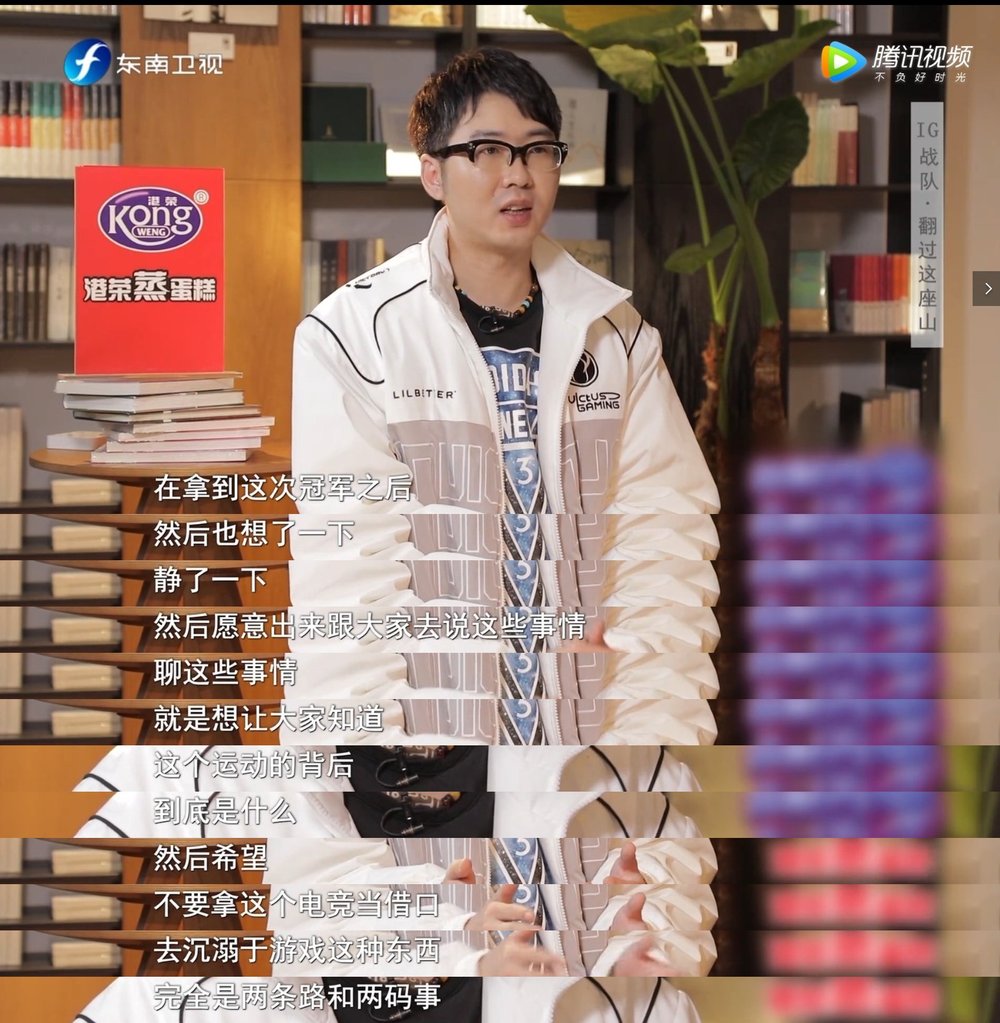 在採訪這三位剛剛獲得冠軍的選手時,魯豫提到了社會上普遍關注的一個問題,很多小孩子看到iG的奪冠,就覺得iG的大哥哥們是他們的榜樣,他們要向你們學習,模仿你們,將走電競這條路上當做自己打遊戲的藉口,或者説就是也想走這樣一條道路。對於這樣的情況,作為職業選手的你們,是怎麼看的呢?