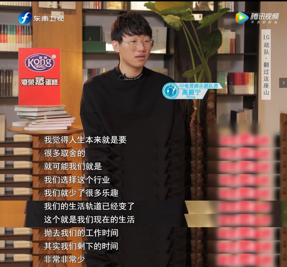 魯豫説,在她看來一名普通遊戲玩家走上電競這條路需要有很多的犧牲與放棄,iG戰隊選手高振寧(Ning)也是這麼認為的。高振寧説,人生本來就有很多取捨,選擇了電競這個行業,選擇了競技體育,就意味着放棄了很多可以享受的樂趣。因為走了電競這條道路,他們這羣職業選手的生活軌道已經完全改變,對於電競選手來説,拋去工作時間,留給自己自由支配的時間真的非常少。