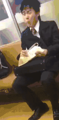 △地鐵上,一位哭着吃三明治的日本年輕人