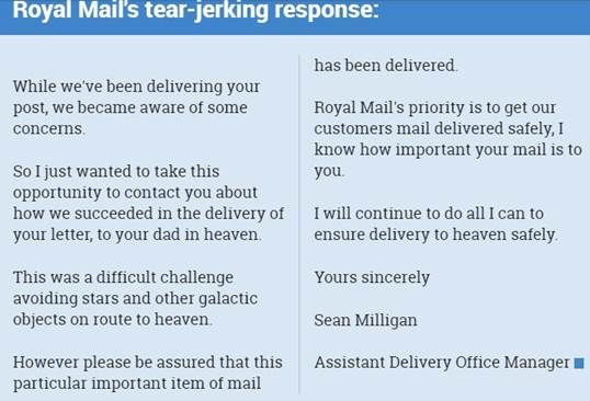 網友Calum Macleod表示“這個故事讓我哽咽,皇家郵政做得太好了。”