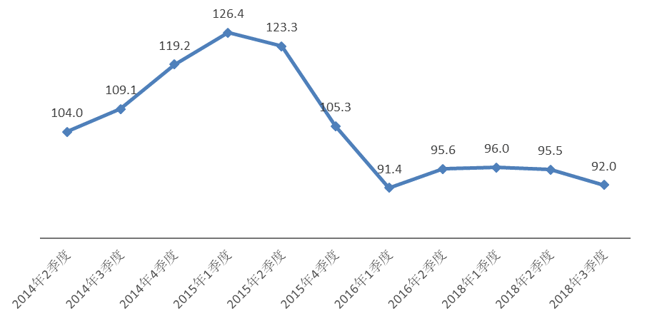 中國家庭金融調查與研究中心最新公佈的《2018年第三季度家庭資產指數報告》指出,家庭總資產延續下降趨勢。主要表現在,工商業經營狀況不容樂觀,工商業資產大幅度下跌;金融資產繼續縮水;房屋資產持續增值,但增幅回落。(圖1)