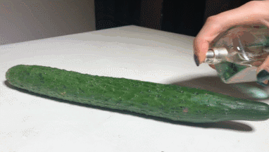 説幹就幹,用最符合貓的野性的尼羅河花園調的香水,給黃瓜來一次氣味大改造。相信眼尖的院友會發現,我們不惜重本,在這跟黃瓜身上,耗費了上圖所示剩餘香水的1/2,當然,也達成了我們的最終的目標:單靠聞,從頭到腳,這根黃瓜都不是黃瓜。