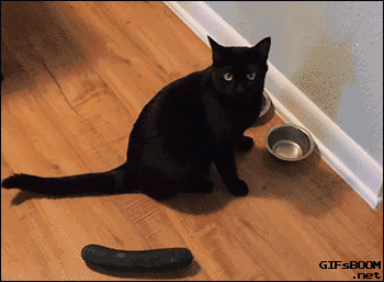 不管黑貓還是白貓,還是其他貓,好像只要是真貓,就會對黃瓜表現出應激反應。比較靈敏的貓,會立馬 — 彈開 — ,急於奔命 ▽