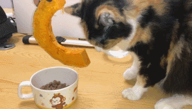 現在讓我們把目光重新投回到瓜的身上。面對邪惡的南瓜,院貓會表現出哪怕一絲的恐懼麼?