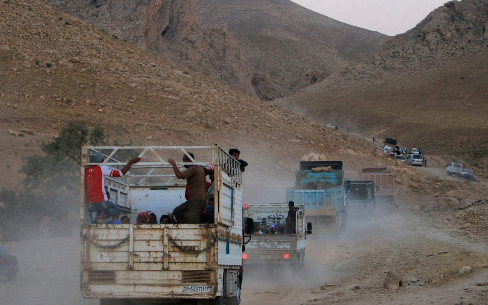 兩輛車護送Jumaah、他的妻子和兩個孩子到伊拉克埃爾比勒機場。