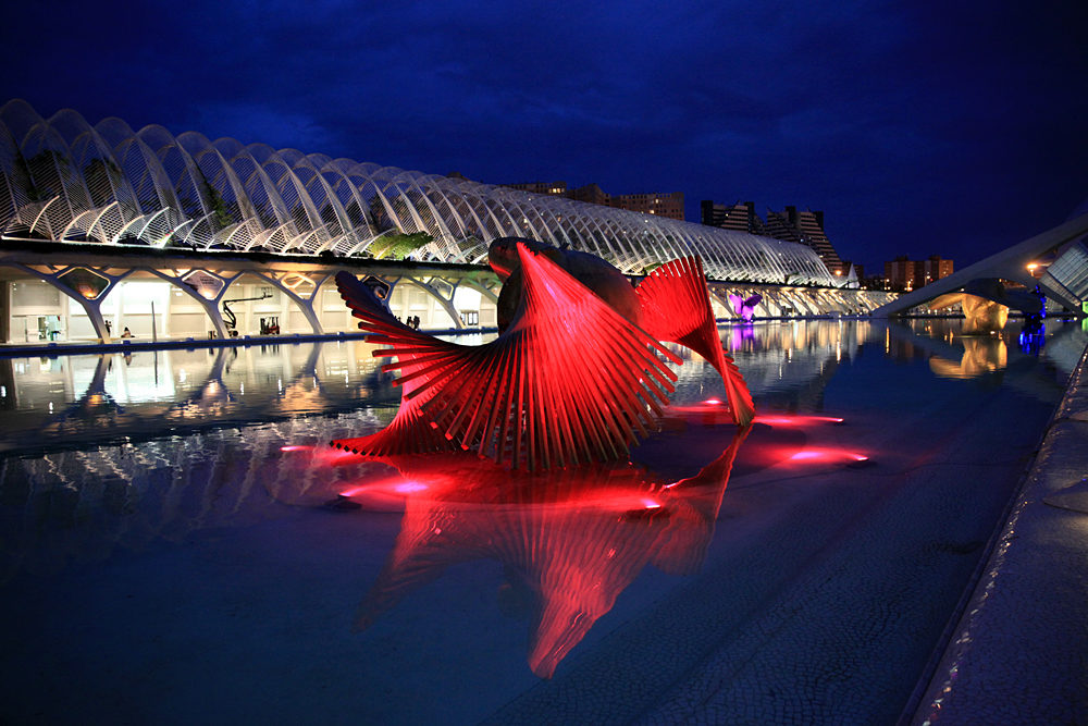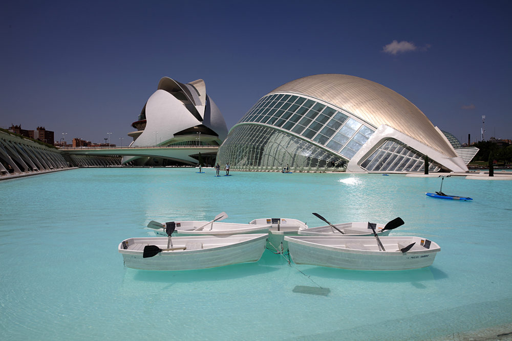 大而淺的水池不僅是景觀的一部分,也供人們戲水,可以划船或者玩踏水板,水不到齊腰深,小孩子掉進去都沒有危險,特別適合炎熱的瓦倫西亞夏天