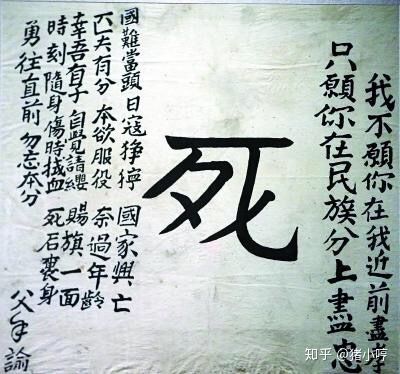 這是抗戰時著名的死字旗,四川一位父親送兒子出川抗戰時給的,現存於成都建川博物館。
