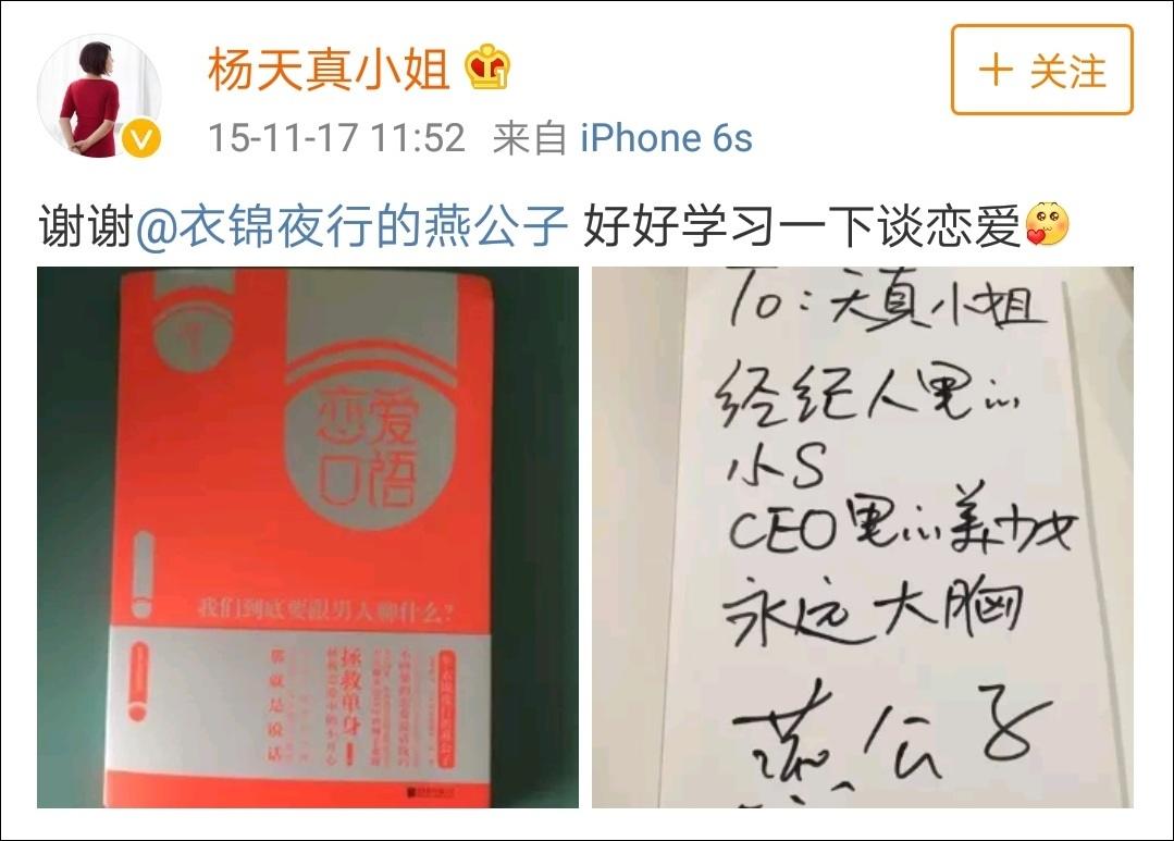 其實,燕公子和楊天真是好友,而馬思純的經紀人又是楊天真。