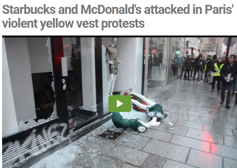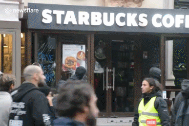 黃馬甲運動中的暴力實現了“消費降級”,從打砸Dior、LV、愛馬仕等,到打砸搶燒星巴克、麥當勞等大眾商業品牌