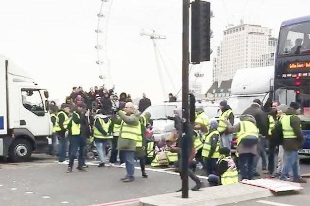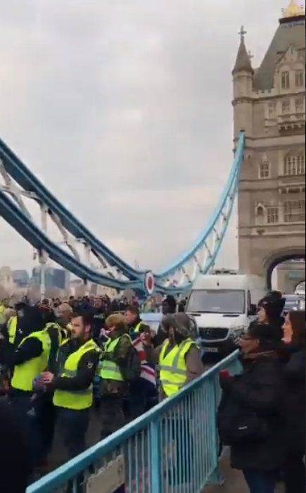 當地時間12月14日星期五,英國威斯敏斯特大橋和倫敦塔橋都被反歐盟的黃馬甲封鎖了,它們都是倫敦的交通要道