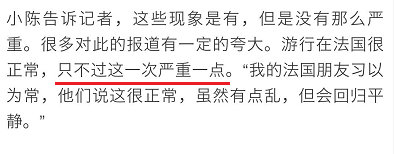 傳統媒體的報道,説是黃馬甲“只不過嚴重一點。法國朋友習以為常。”