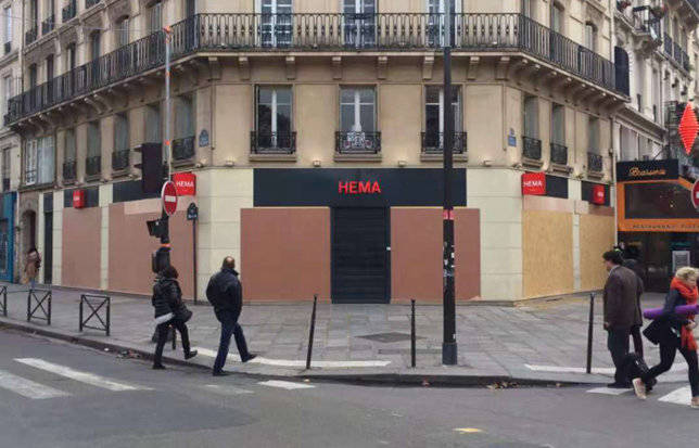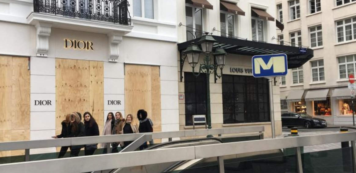 布魯塞爾的奢侈品店12月8日也都用木板把自己封了起來