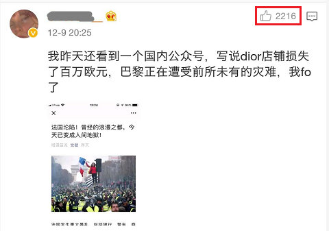 Dior損失百萬歐元的事被當成了假新聞,獲得兩千多點贊。