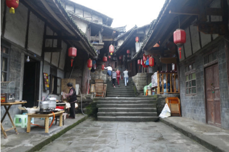 川北恩陽古鎮上茶館遍佈,38條古街民巷中就有七十五家茶館。其中名氣大的當有十二家,為川北場鎮之冠。富貴貧賤,各行各 業各進各的茶館,或品茶聽曲,或洽談生意,或調解糾紛。恩陽機神廟茶館為姜客長所開,到這裏喝茶的人少有普通勞動者,均為恩陽河的紳士,如廖彬如、賴素如、莫顏如等袍哥中的“人字”、“義字”號人物,尤以“人字”號人物為多,如楊德、王奕成、柯朗如、陳道言、魏家恩、李盛龍等。茶館有保衞安全的保鏢,有演唱小調的民間賣唱歌妓。熱天有人從事打扇驅暑,品茶均帶上太太; 或情婦作陪。這些人品茶的時間較長,對茶葉的級別,泡茶的茶具都有講究。這類茶館的篩茶師,要經過專業訓練。茶具為景德鎮青花瓷壺或紫砂壺,青花瓷紫砂泥的小杯與三炮台蓋碗相仿而小。客人入座後,篩茶師當着客人的面,將青花瓷壺或紫砂壺茶杯放入沸水,進行燙壺、燙杯,並用沸水將壺、杯外面進行沖洗,名曰“封壺”或“封杯”即今天所説的殺菌消毒。再將茶葉輕輕撥入壺中。如果是綠茶,則“請青龍進宮”,先氽入沸水少許,蕩上幾轉後將水倒出,名曰“洗茶”。然後再將沸水來入壺內,氽水時使壺咀點頭三次氽入,名曰“鳳凰三點頭”,以示對客人的尊敬。接着,用壺蓋把浮在茶水面上的茶沫刮出去,名曰“春風拂面”。蓋上茶蓋後再用沸水沖洗壺面,使壺裏外温度保持一致,並清除篩茶師手上帶留的不潔之物,名曰“重洗仙顏”。
