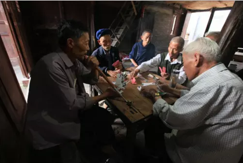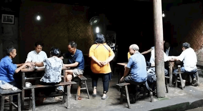 恩陽鎮的十二個著名館中,每個茶館都有各自不同特點的民間文藝表演。如“玩友”、“皮影”、“部聖諭”、“説書”、“唱小曲”、“打竹琴”以及屬賭博性質的“壓紅寶”、“執骰子”、“打紙牌"、“玩麻將”等等,尤以“玩友”最為馳名。什麼叫“玩友”? “玩友”即川劇的一種演唱形式,化妝登台演唱為“唱戲”,不化妝,在茶館泡一碗“三炮台”座唱,叫茶“玩友”,其劇目、曲牌、樂器完全相同,前者又唱又演,後者唱而不演。