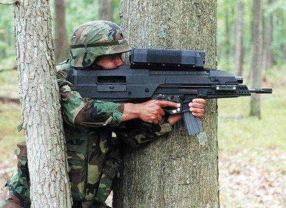 (算是比較輕的一款了,40毫米榴彈發射器,但是因為是傳統步槍構型,彈匣、扳機都佔用了步槍長度,導致榴彈發射器長度不足,威力和精度受限,