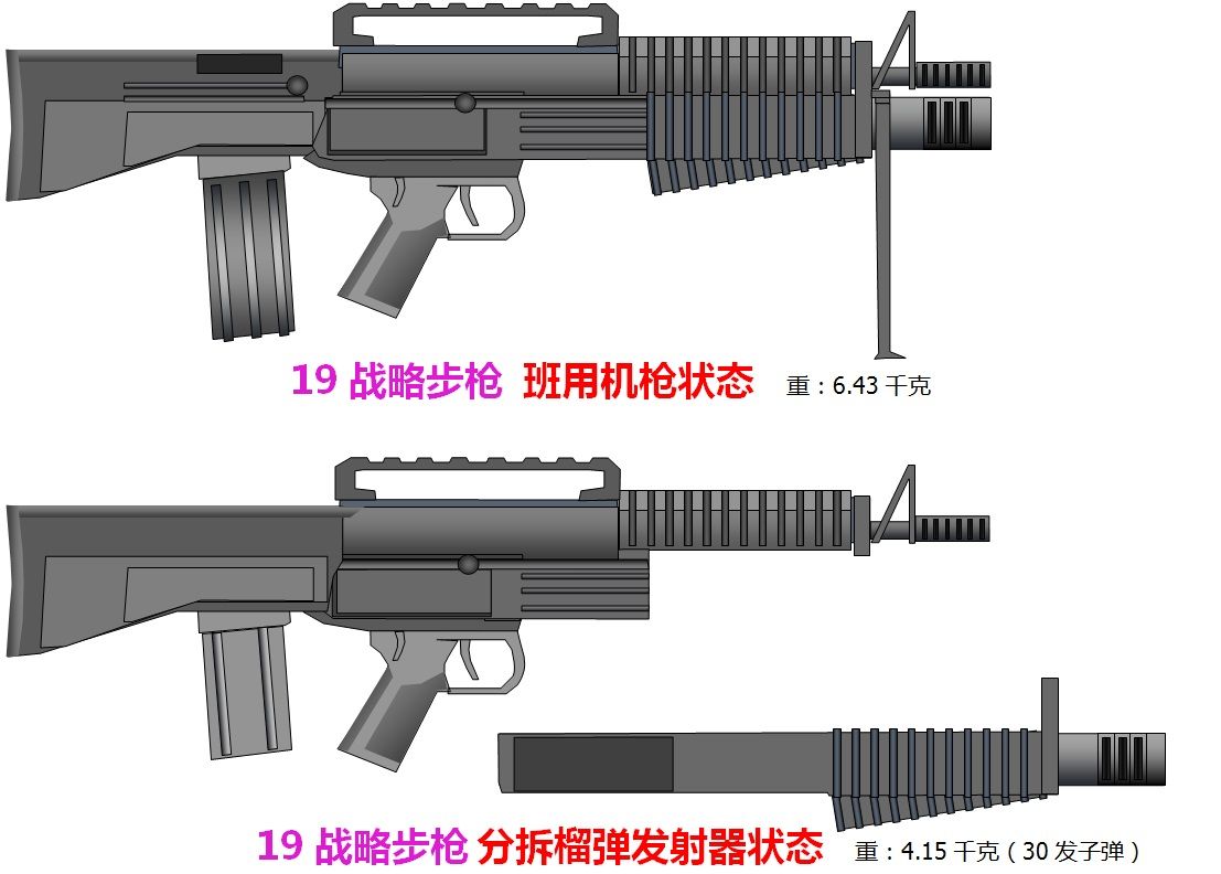 我預設步兵班配置中,一個11人到13人的機步班配5-6支19戰略步槍,機械化步兵配備短突版,其它步兵配普通版,每支戰略步槍都可以裝兩腳架,成為輕機槍,每支都可以裝上瞄準鏡,成為狙擊步槍。