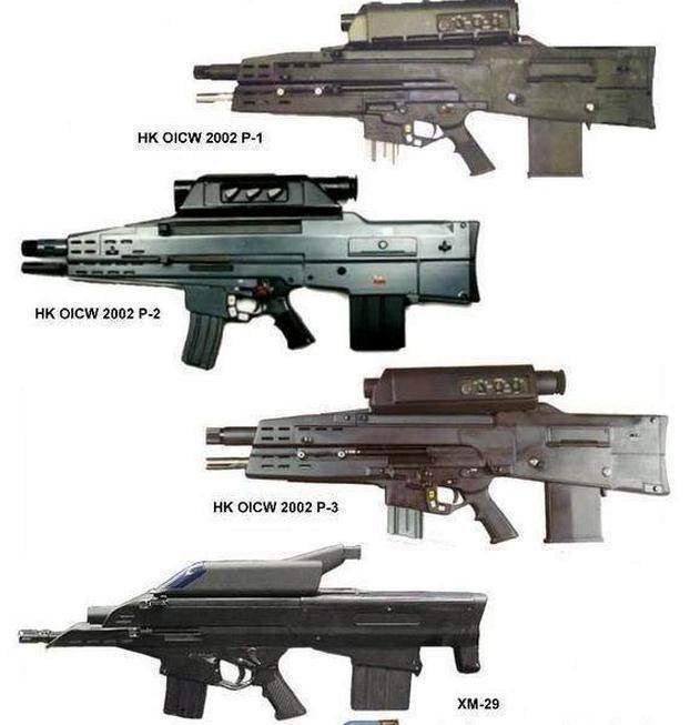 (無論哪個階段的改型,都是榴彈發射管在步槍上方,簡直就是在榴彈發射器前下方掛了一款短突擊步槍。這導致其步槍彈的初速、精度不足。同時,沒有考慮到取消電子設備的低配版,一開始構型不良,導致XM29的悲劇。據説現在榴彈發射器單獨分列出來,已經裝備。