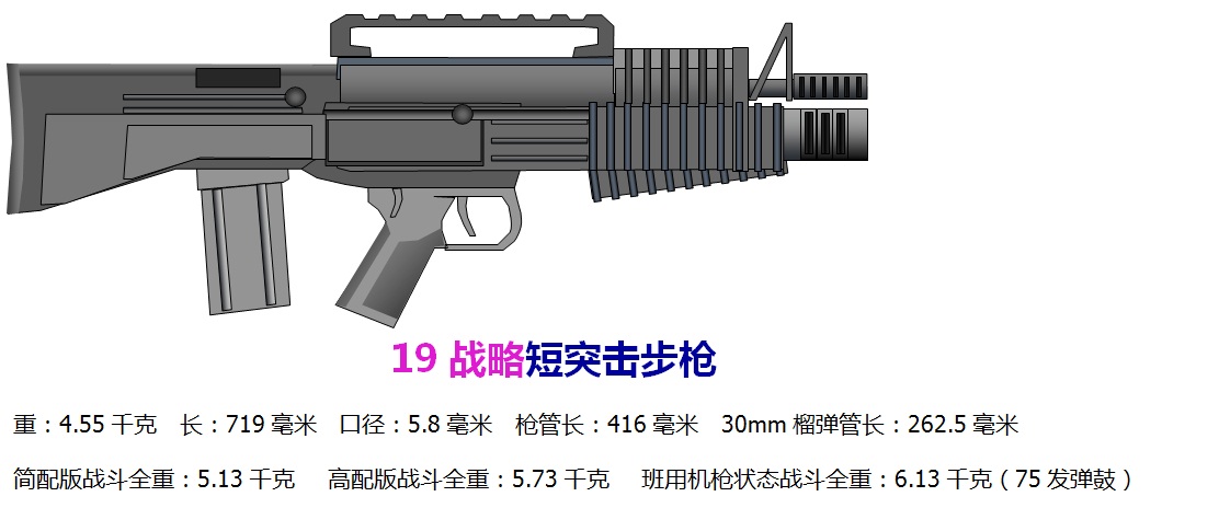 該短突版戰略步槍,作為輕步兵、山地步兵、兩棲步兵、空降兵的主裝型號。榴彈精確射程350米,覆蓋射程650米。
