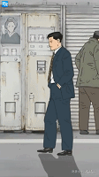 而豎屏動畫中鏡頭的移動速度給人的感覺真的要比橫屏動畫快多了,《孤獨的美食家》下面這個鏡頭,就有一種彷彿在一邊走路一邊看着五郎的感覺。