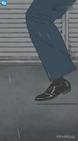 如果在橫屏動畫中,人物在跑過店門的時候,如果消失在畫面中的話就會顯得不自然。而在豎屏動畫中,這樣的設置是非常巧妙的,而且還能展現人物奔跑的疾速程度。