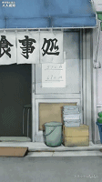 如,《孤獨的美食家》中五郎躲雨這一段,就非常有意思。全景視角中人物直接從鏡頭消失,下一個鏡頭直接從店門的方向給了人物一個特寫。