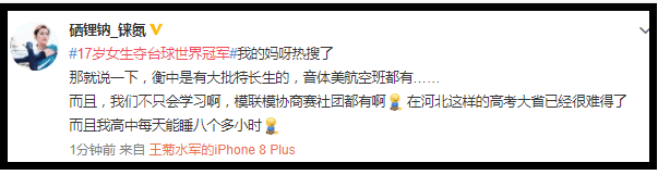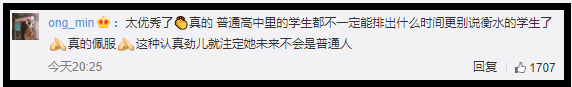 也有網友感嘆道,還是小姑娘自己優秀,普通高中裏的學生都不一定能擠得出時間,更別説衡水了。