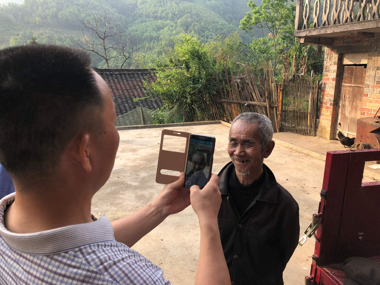 因為村裏大部分年輕勞動力都外出打工了,老人們的各種福利待遇的手續辦理就基本只能通過我們上門去給他們辦理和補充,圖中是幫獨居的老人辦社保領取手續的人臉識別。
