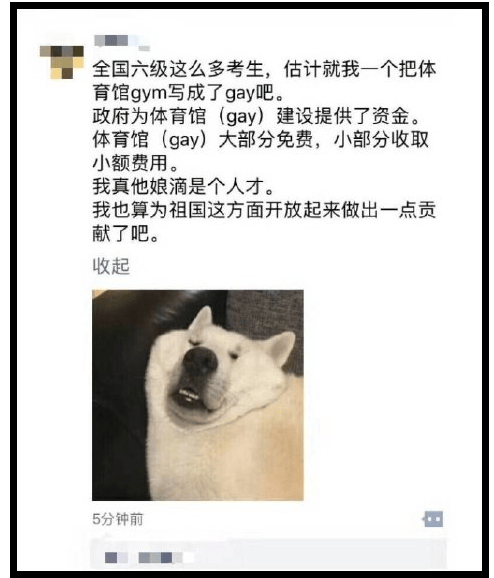 把體育館(gym)寫成同性戀(gay)