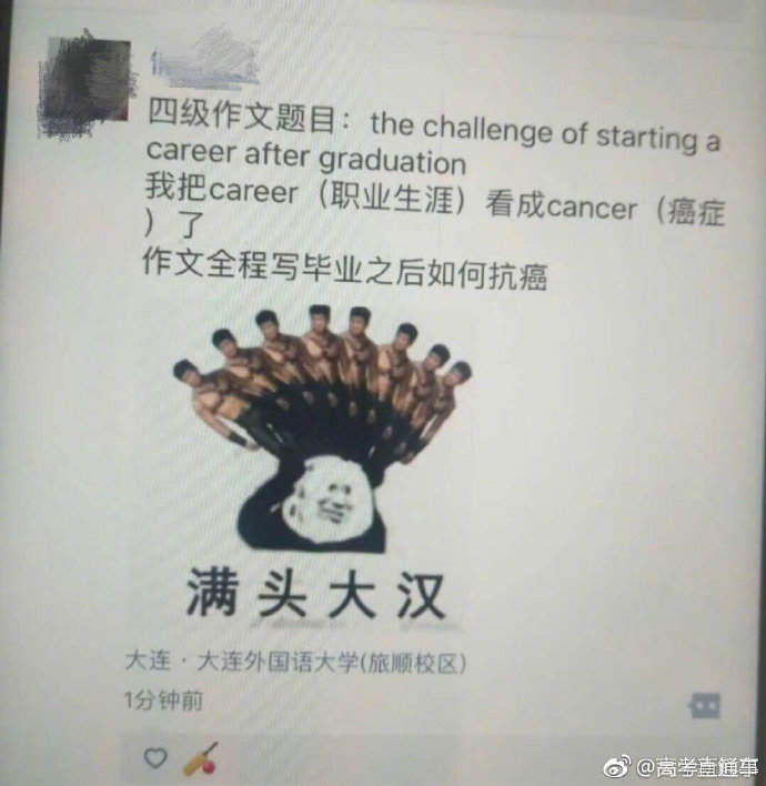 今年四級題目:the challenge of startin ng a career after graduation,畢業後開始工作的挑戰,估摸着是幾個詞長得太像了,一下子放到了好幾個人。
