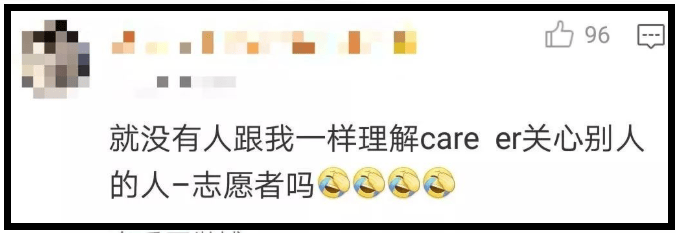 再比如,頭腦靈活的優秀學生,用拆字法,將career分解成了care-er,直接翻譯成了志願者。