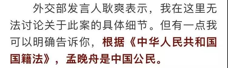關於國籍問題,外交部發言人早就回應過了:孟晚舟是中國公民。