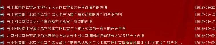 説起來,如果點開北京同仁堂的官網,在公司聲明一欄裏,滿滿當當都是對各種“冒用”“合作”的解釋。