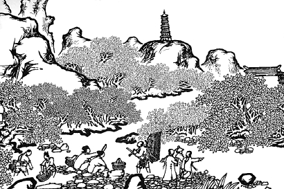 此外,馬一寶還畫了很多皖南的山水畫卷。他的家鄉在安徽涇縣,那裏保留着大量徽派建築,又是產宣紙的地方,擁有濃厚的歷史文化底藴。馬一寶從小就喜歡畫畫,可惜家裏窮,媽媽又覺得畫畫是“不務正業”,趕着他去幹農活。幹活間隙,他經常拿着小樹枝在地上畫,把家鄉的馬頭牆和山水都畫在沙地上。高中畢業後外出打工謀生,畫畫這一愛好就中斷了。大約十年前,他來上海做保安,經常需要值夜班,大段的時間正好可以重拾畫畫的愛好。一次次徹夜練習、默默摸索、欲罷不能。後來他乾脆回老家買了宣紙,用經過改造的中性筆,開始了長達十年的長卷創作之路。