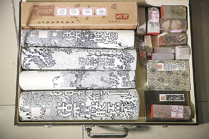 珍藏在箱子裏的部分作品。“涇縣一保”是馬一寶的筆名。