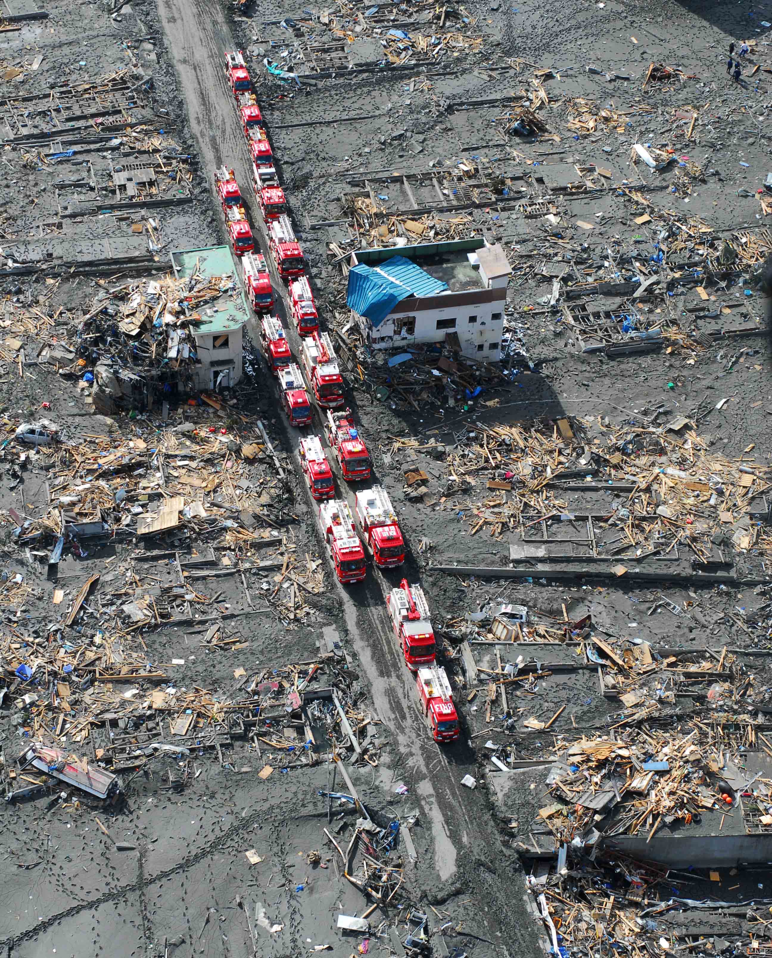2011年3月18日,東日本大地震之後,前往巖手縣山田町漉磯地區救災的緊急消防援助隊大阪府隊之車隊 /Wikipedia
