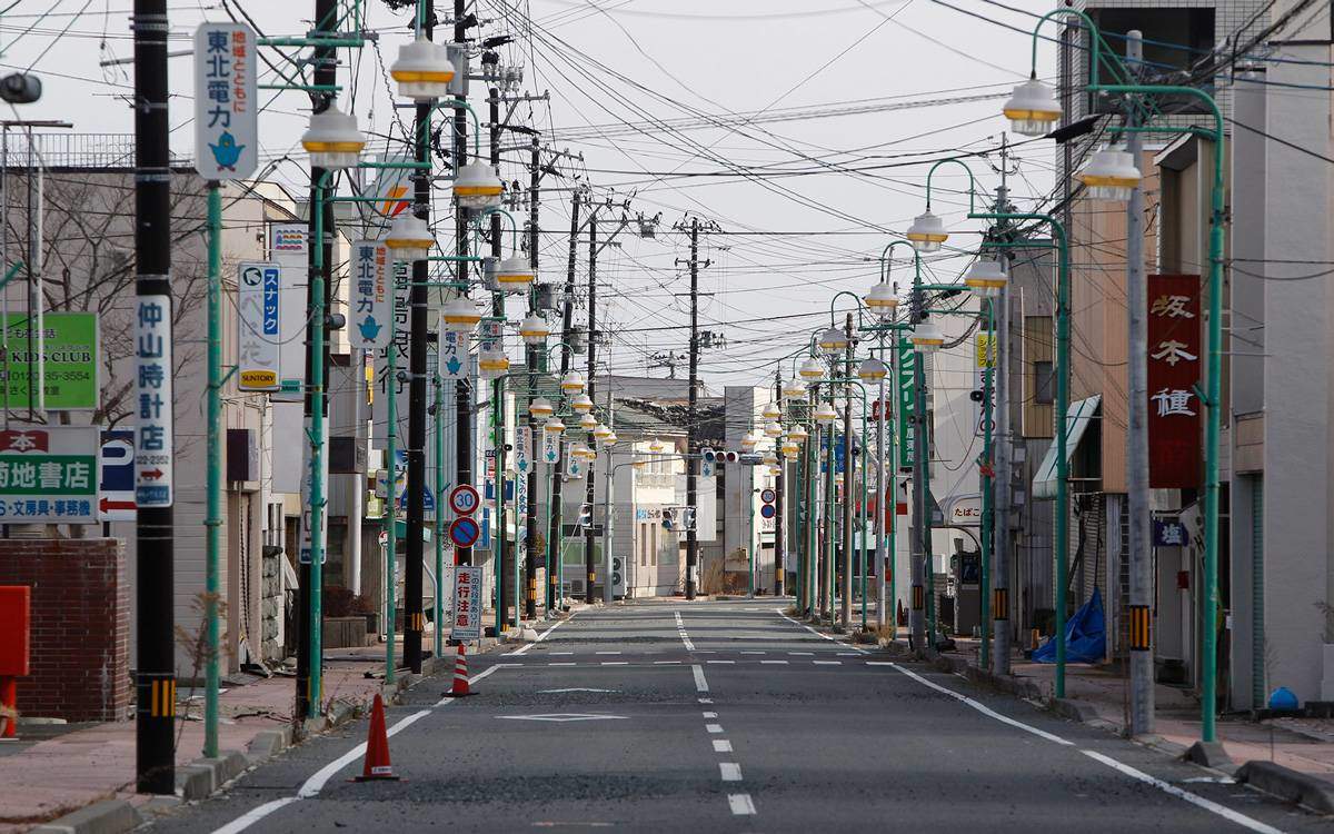 2012年1月15日,日本福島縣,福島第一核電站癱瘓後20公里半徑禁區內的一整條購物街都空了 /Reuters