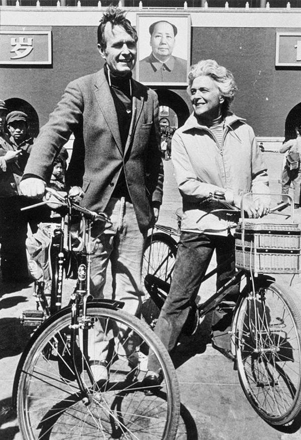 1974年,50歲的老布什作為第二任美國駐北京聯絡處主任到達北京。老布什與他的妻子芭芭拉騎自行車經過北京天安門。
