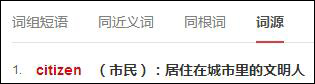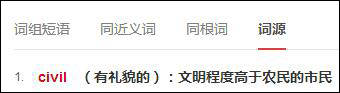 對於這名博主在微博中提到的“civil”和“citizen”兩個詞,有道詞典引用的詞源介紹是這樣的。