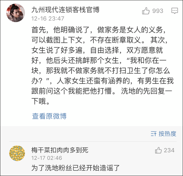 也有一些網友表示,家務活都是雙方應該做的呀,張雲雷這話也沒錯。