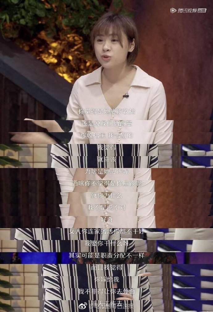 這時候女嘉賓問,你覺得做家務是説就該她做呢,還是兩個人協商一人做一半之類的,張雲雷很堅決地説,她應該做啊。