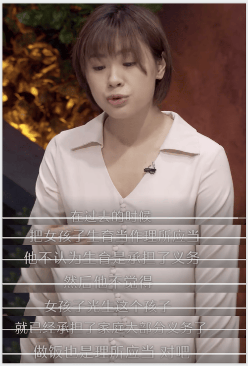 女嘉賓表示,在過去,生孩子、做家務就被默認是女性的義務,