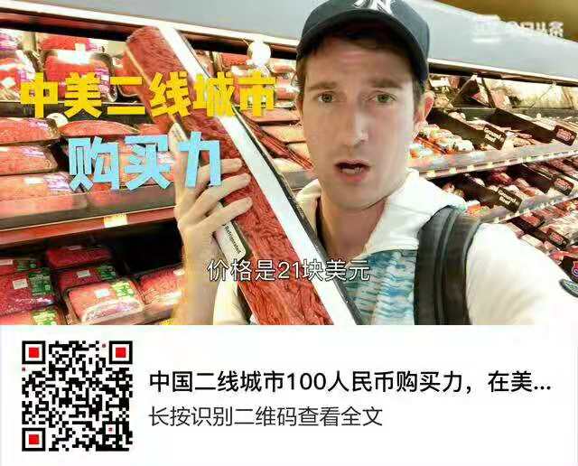 今日頭條上美國網友做了一箇中美二線城市100人民幣和60美元的購買力比較,
