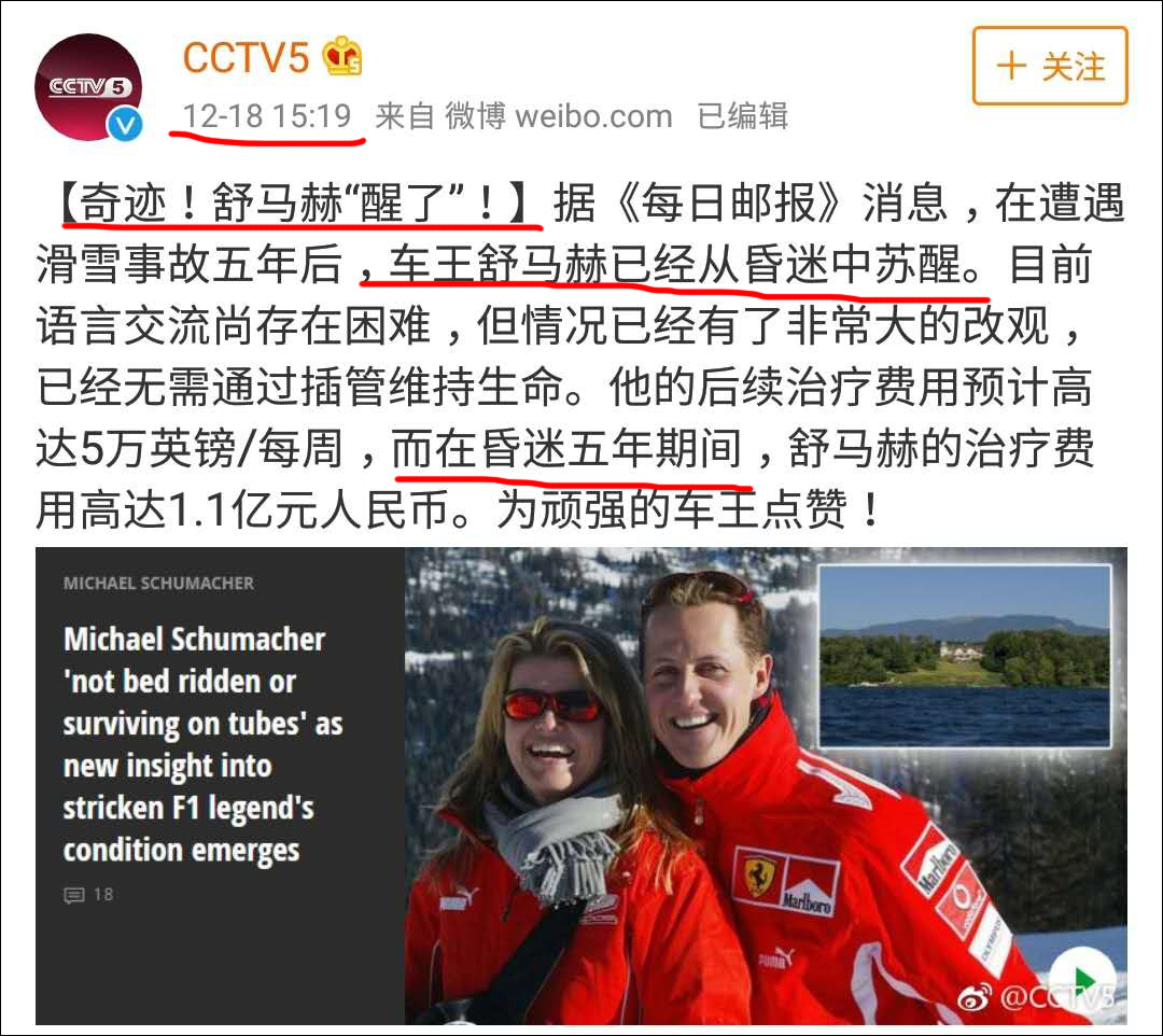 薛定諤的舒馬赫,從媒體報道看車王的甦醒與昏迷_風聞