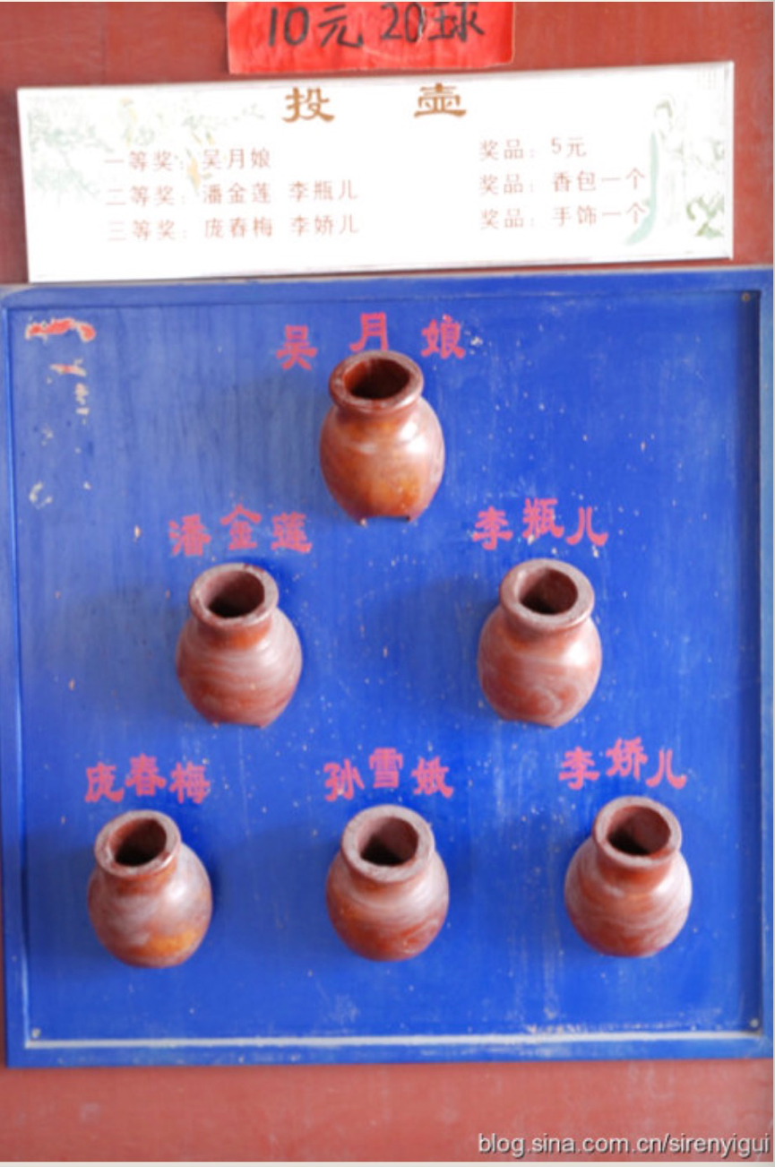 陽穀西門慶故居中的投壺遊戲,10元20球