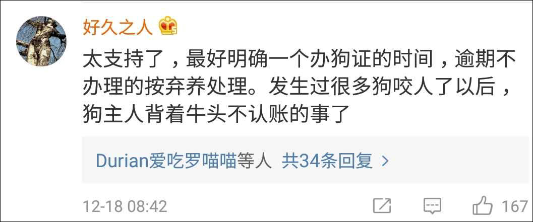 也有網友湖北黃石出台的“限狗令”表達了支持。